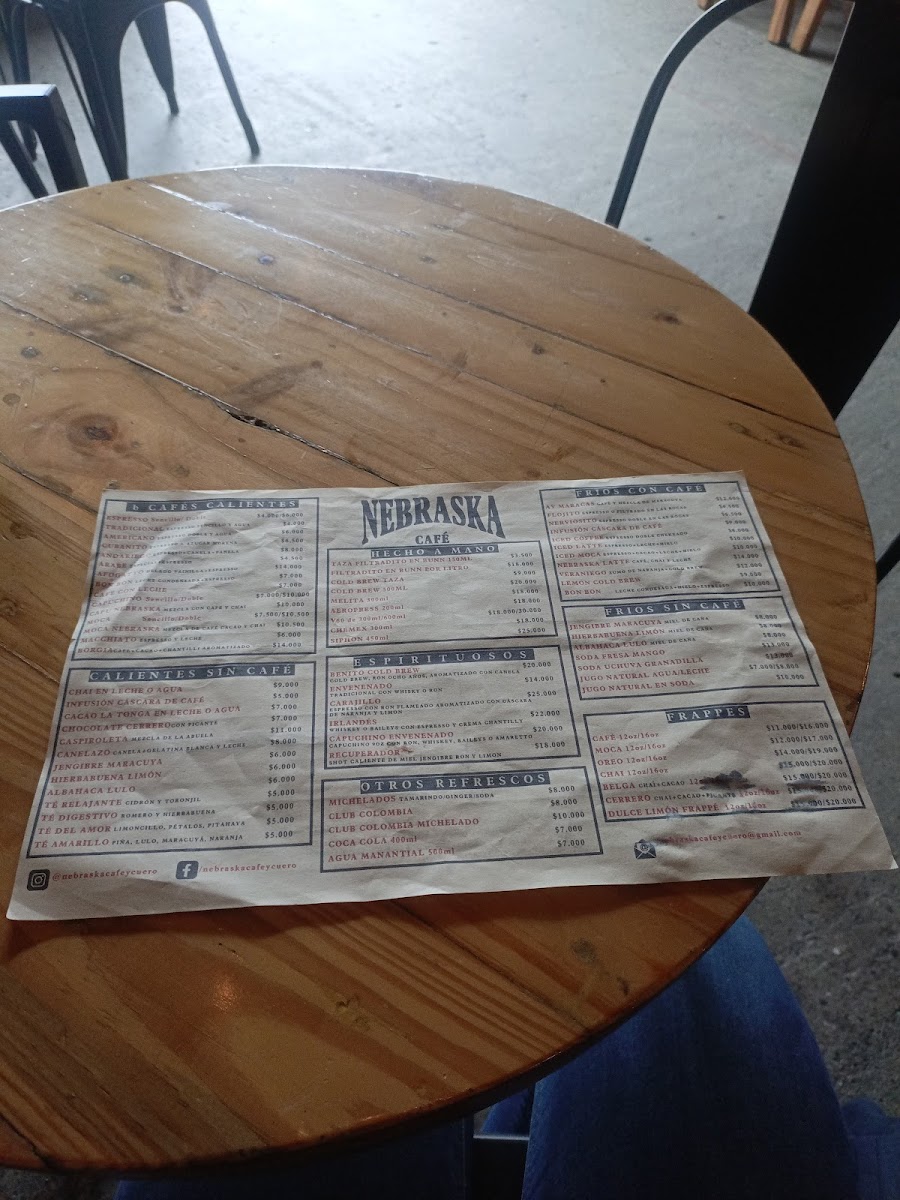 Nebraska Café Y Cuero offers a diverse and tempting menu, perfect for any time of day. Starting with their Desayunos (breakfast options), the Omelette Nebraska stands out as a hearty choice, while the Pan Con Frutas offers a lighter, refreshing alternative. For those looking for something savory, the Dedos De Queso, Pastel De Carne, and Pastel De Pollo from their Panaderia section are delightful pastries that pair perfectly with their hot drinks. Speaking of which, their Café Tradicional and Café Americano are classic options, but the Gran Capucchino Andariego and Capuchino bring an elevated twist for coffee lovers. The Frappés section features a variety of cold beverages, including the Promocion Frappé De Café + Frappé Chai, as well as options like the Frappé Dulce Con Limón and Frappé De Moca in 12oz sizes. Sweet tooths can also enjoy their Torta De Banano, Torta De Cacao, and Torta De Zanahoria from the Reposteria (pastry) section. For a convenient snack, the Combo Omelette Nebraska + Cafe Latte is available through the Rappi promo. If you're in the mood for something herbal, try their Chai En Leche or any of their refreshing Bebidas Frias like Café Veraniego or the exotic Infusión Maracuyá Y Jengibre. Finally, their Platos Fuertes include hearty options like the Potranca, Sándwich Nebraska, Potrico Wrap, and the flavorful Gualdrapas. With a menu that covers all tastes and times of day, Nebraska Café Y Cuero is a fantastic place for a satisfying meal or a quick refreshment.